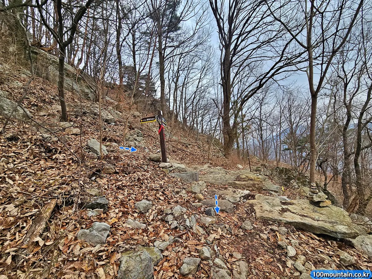 ▲ 평상이 있는 삼거리에서 왼쪽으로 내려갑니다. 오른쪽은 정규 등산로가 아닙니다.